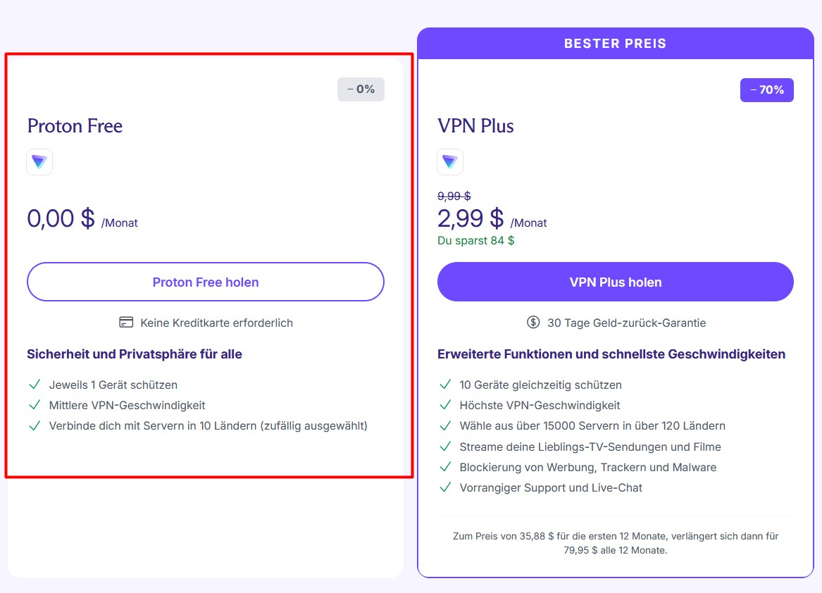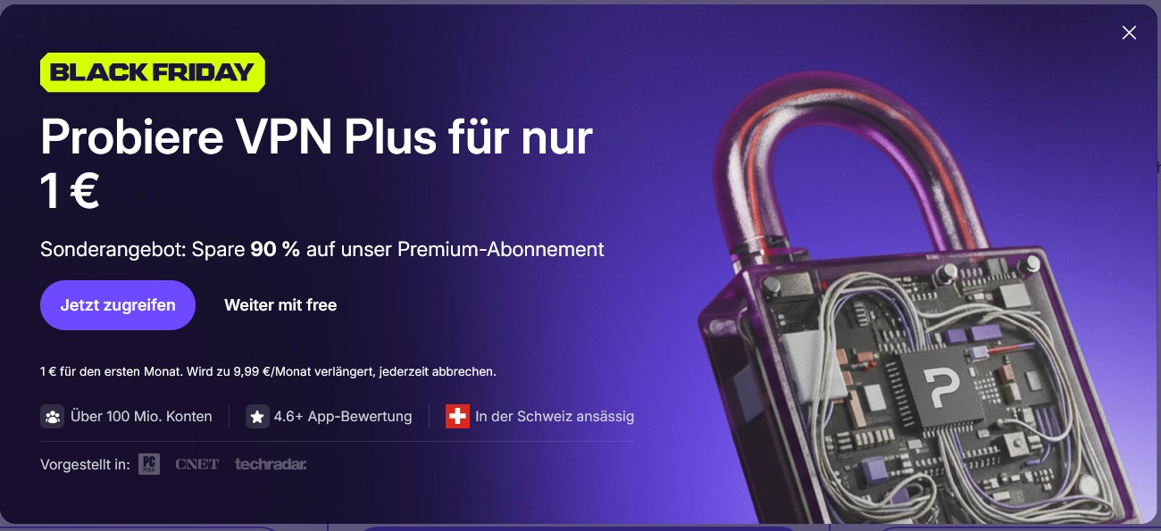 Unter Umständen wird dir doch Geld heraus gelockt. Du wirst animiert die Bezahlversion zu wählen. Du hast jedoch bei Proton VPN immer eine kostenlose Auswahl. Schau genau hin, was du anklickst. Die Bezahlvariante ist immer hervorgehoben. Aktuell ist Black Friday, da gibt es ein Sonderangebot. Für Sonderangebote gibt es immer einen Grund 🙂 .
