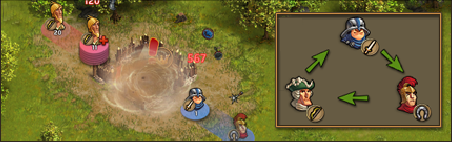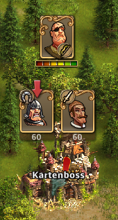 Wir haben selber die Möglichkeit zu entscheiden, welche Einheit wir gegen welchen Gegner einsetzen möchten. Auch während des Kampfes können wir Einfluss darauf nehmen. Der Gegner, der zuerst angreift ist mit einem roten Pfeil im Lager gekennzeichnet.