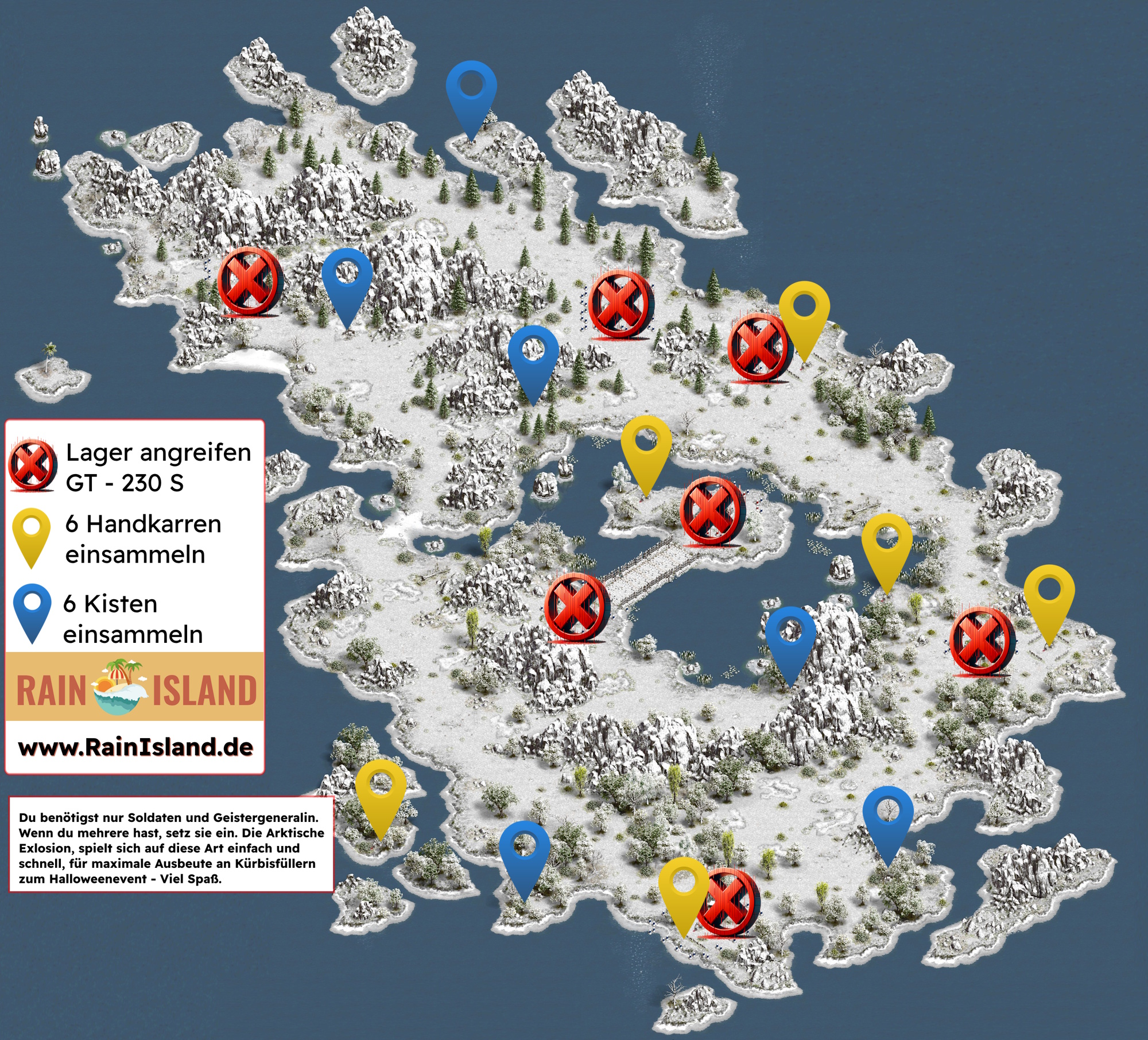 Zu Halloween sammelt man schnell und günstig Haufenweise Auffüller, für die Friedhöfe der Kürbisse, mit der Arktischen Explosion. Das geht ganz fix und einfach. Dafür habe ich eine Karte erstellt.