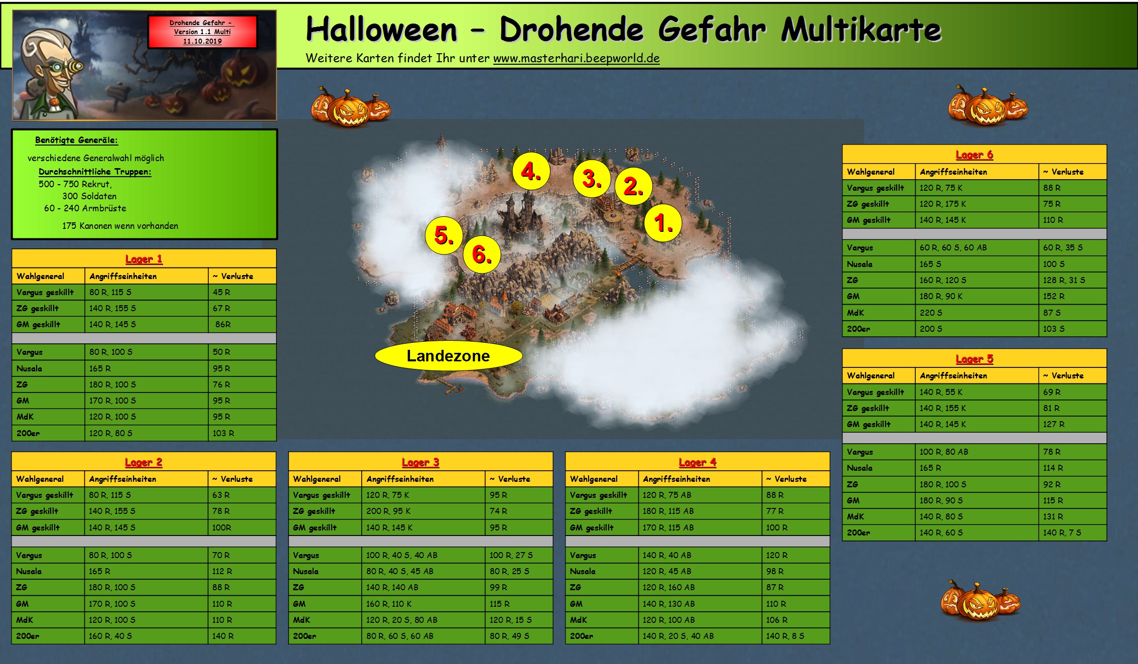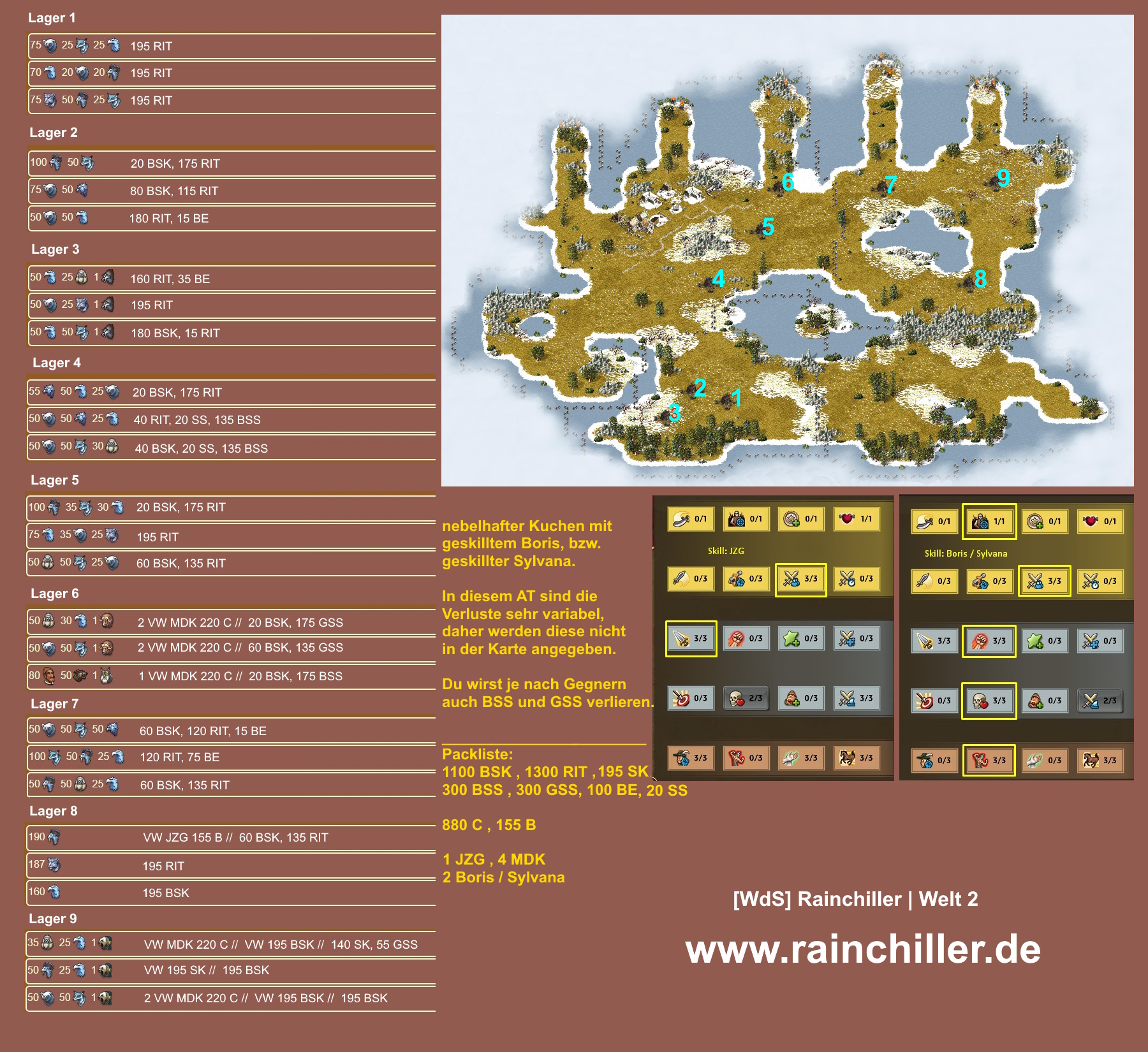 Der nebelhafte Kuchen ist ein sehr individuelles Abenteuer. Die gegnerischen Einheiten, wechseln von mal zu mal. Daher habe ich in meiner Karte die Angriffe für alle Eventualitäten eingetragen.