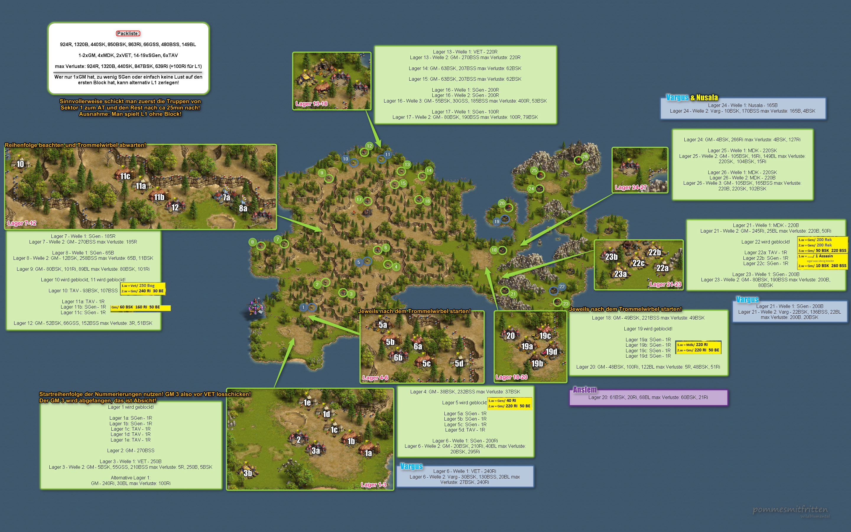 - Für die Alternativen müsst Ihr zusätzliche Truppen mitnehmen.
